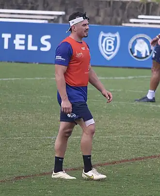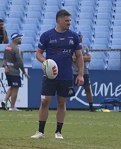 Mahoney played in a trial match against the Canberra Raiders in Moruya, New South Wales, winning 34-18 and playing a key role in his 26 minute stint, setting up two tries and exerting a strong influence around the ruck.[20] In round 1 of the 2023 NRL season, he made his club debut for Canterbury in their 31-6 loss against Manly at Brookvale Oval.[21] Mahoney played a total of 24 games for Canterbury in the 2023 NRL season as the club finished 15th on the table.[22]