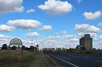 The railway station closed in 1975,[14] and was demolished. There is still a grain silo near the site of the old station,[18] but it is no longer used as a train loading location. The names of three of the streets of the second village remain in use, Reefton Street, Carruthers Street, and Austral Street, although these no longer entirely conform to the village's plan.[18][15]