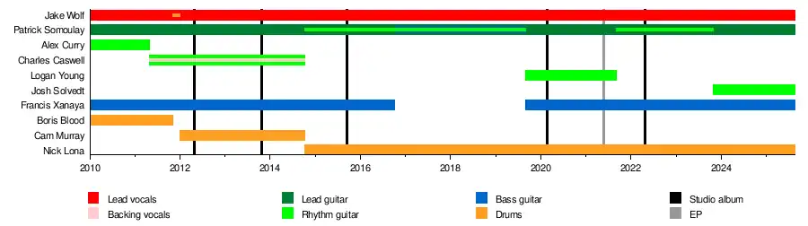- Jake Wolf – lead vocals (2010–present), drums (2011–2012)