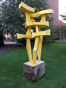 The abstract (geometric) sculpture measures approximately 6.5 feet (2.0 m) x 4 feet (1.2 m) x 4 feet (1.2 m) and rests on a base that measures approximately 1.5 feet (0.46 m) x 1 foot (0.30 m) x 2 feet (0.61 m). Its condition was deemed "treatment needed" when the Smithsonian Institution surveyed the work as part of its "Save Outdoor Sculpture!" program in 1994.[3]