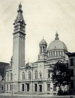 Krauskopf (1858-1923), like the two previous rabbis at KI, was a German speaking immigrant. Krauskopf had emigrated to the United States in 1872, at age 14, and quickly learned English. In 1875, at the age of 17, Krauskopf went to Cincinnati, where he was a member of the first class at the Reform Movement's recently opened rabbinical school, Hebrew Union College (HUC).[19] While at HUC Krauskopf published the Union Hebrew Reader (1881) which is commonly known as the First Union Hebrew Reader, the Second Union Hebrew Reader (1884), and Bible Ethics: A Manual of Instruction in the History and Principles of Judaism, According to Hebrew Scriptures (1884)[20] (full text[21]). While in Kansas City, Krauskopf was enormously popular within his synagogue and the larger Kansas City community. His public lectures attracted large audiences that extended well beyond the city's small Jewish community. Some of these lectureswere then published as books, such as Evolution and Judaism[22] and The Jews and Moors in Spain.[23] Additionally, he was involved in a wide range of civic activities, such as becoming a life-member of the board of the National Conference of Charities and Correction.[24][25] In 1885 he was a key organizer of a convention of reform Rabbis in Pittsburgh, known as the Pittsburgh Conference. Although only two years out of rabbinical school, he was elected vice-president of the Pittsburgh Conference, of which Isaac Mayer Wise was president. This conference wrote the Pittsburgh Platform, which became the defining statement of Reform Judaism at that time. Given Krauskopf's accomplishments, it was hardly surprising that KI recruited him, and it was equally unsurprising that the leadership of B'nai Jehudah attempted to prevent him from leaving. After some embarrassing communications, Krauskopf arrived in Philadelphia in late October 1887.