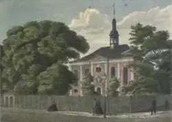 Charlotte Amalie placed the foundation stone on 20 April 1688, and the building was consecrated on 10 November 1689.[2] The German and French reformed churches shared the new church. The complex also included a rectory, with residences for four priests, a school, an old age asylum, and an orphanage.