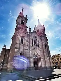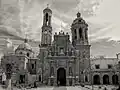 The first work of great magnitude carried out by Refugio Reyes was the Templo de Guadalupe in the city of Zacatecas, which was known as the sanctuary of Father Diaz, after Father Jose Anastasio Diaz Lopez, or "Guadalupito". The temple was started in 1891.[25] The temple was promoted by the recent coronation of the Virgin of Guadalupe by the Mexican Catholic Church, for which remodeling, enlargements and construction of temples whose invocation was the Guadalupana were made. Refugio Reyes was chosen, probably because he already had experience in large-scale works, and also because of the links he had with the Franciscan community, for which he had already done some works.[26]