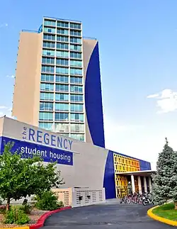 Regency Student Housing is one of three student-housing communities for the Auraria Campus in downtown Denver, Colorado. Formerly the Regency Hotel, the building is privately owned by local investor and proprietor V. Robert (Rob) Salazar, who bought the building in 2004, and serves three schools: Community College of Denver (CCD), Metropolitan State University of Denver (MSU Denver), and the University of Colorado Denver (CU Denver).
