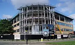 The focal point of Regent Centre since 1965[15] had been Northern Rock's old 7-storey building. In early 2006 this building was demolished[16] and its replacement, known as Partnership House, which is 10 storeys high and cost £35 million, was completed in November 2008.[17] Two of Northern Rock's other buildings on the site were completed in the 1990s; two further buildings were built in the early 2000s. The 1960s tower building also housed a branch of the Northern Rock bank.