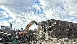 More than a half-century old, the Regent Park projects were aging rapidly and in need of costly repairs. The city government developed a plan to demolish and rebuild Regent Park over the next many years, with the first phase having started in the fall of 2005. The addition of market units on site will double the number of units in Regent Park. Former street patterns will be restored and housing will be designed to reflect that of adjacent neighbourhoods (including Cabbagetown and Corktown) in order to end Regent Park's physical isolation from the rest of the city. In support of the Clean and Beautiful City campaign by former Toronto Mayor David Miller[6] and to further the goal of renewing architecture in all Toronto Community Housing projects, an architectural competition was held for the design of the first apartment building in the complex. Toronto-based architectsAlliance was selected winner of the competition, with a modern glass point tower set on top of a red-brick podium structure in their proposal.[7] While phase two had not yet been completed, the third stage of the revitalization plan began in May 2014, which will include newer or updated facilities. The revitalization plan has five phases. Phase two of the revitalization plan was completed in 2018 with the third phase set to be completed by 2023/2024.[1]
