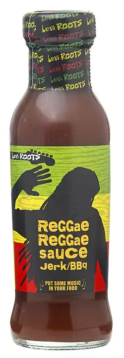 Reggae Reggae Sauce is a barbecue sauce that incorporates Jamaican jerk spice. It was popularised by the creator Levi Roots's appearance on BBC Two's Dragons' Den, on which he used a song to sell his product.