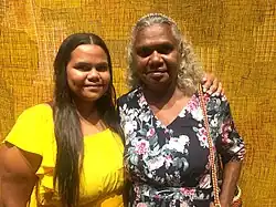 ![]() Regina Pilawuk Wilson with her granddaughter Leaya Wilson at the opening of "Marking the Infinite: Contemporary Women Artists from Aboriginal Australia" at The Phillips Collection, Washington, D.C. | |