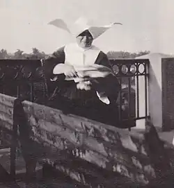 In 1919, over the objections of the doctors where she served in Indiana who did not want to lose her, she went to Carville, Louisiana to care for patients with leprosy (Hansen's disease).[3] She worked at United States Marine Hospital #66 on an island in the Mississippi River that became the National Leprosarium, under the auspices of the Public Health Service. The buildings were former quarters of the enslaved.[1] One of the stories about her said that she climbed into a boat on the Mississippi River to row herself all alone from New Orleans to the island. She apparently laughed along with the good-natured comments about those on shore seeing her ample body handling that small boat.[16] Another story said that a man served as her personal guard, and she also had a big watchdog named Zep, a companion who also protected her from patients who could become violent because of their illnesses.[3] Carville was her last major posting, and she stayed almost 20 years, until 1940. Beyond nursing, her sisters noted that "she sewed for the patients, wrote their letters, [and] baked dainties for them."[8] Not all of her patients were American. A Turkish patient spoke no English, but called her "Big Mama" and became quite devoted. Once a Chinese patient brought her seven guns that he wanted her to hide for him until his room was inspected (she was afraid and refused, although she later told the story with humor).[8]