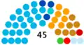The Regional Council of Abruzzo was originally composed of 40 regional councillors. The number of regional councillors increased to 43 in the 2000 regional election and, subsequently, to 45 in the 2008 regional election.