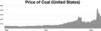 Australia's east coast faced very high gas and electricity prices and low reserve capacity in mid-2022, due to a combination of factors, including high prices for gas (which is exported via LNG terminals in Queensland and thus local prices depend on the global LNG market) and thermal coal, constrained production and transportation due to flooding in coal producing regions,[33] and a series of outages in coal-fired power plants. This led the Australian energy market operator AEMO to temporarily suspend operation of the east coast electricity market for the first time since its inception, and take direct control of generation and dispatch.[34] AEMO also intervened in the local gas market after a large gas storage facility in Victoria became increasingly depleted due to the "unprecedented demand".[35]