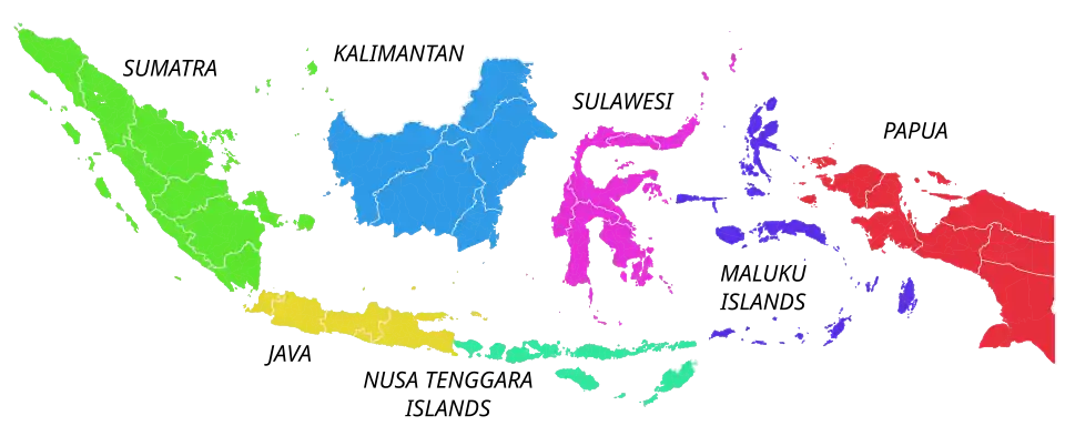 According to ISO 3166-2:ID, Indonesia is divided into seven geographical units, with each unit consisting of major islands or an island group. These geographical units are as follows:
