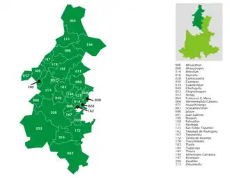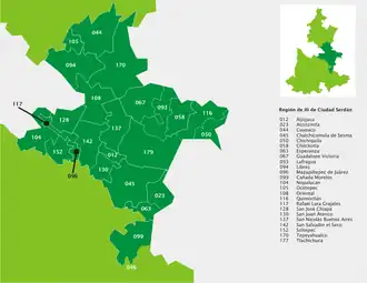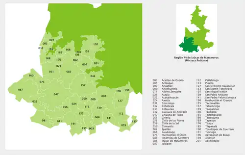 | Municipalities of Región VI - Izúcar de Matamoros | |||
