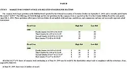 Dividend history and intent to pay or not pay dividends must be discussed. Securities authorized for issuance under equity compensation plans must be revealed; this also involves Regulation S-X. A performance graph that shows the "yearly percentage change in the registrant's cumulative total shareholder return on a class of common stock" is required. Figures must also be compared with one or more "peer issuer(s) selected in good faith".