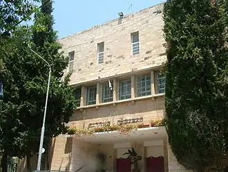 Gymnasia Rehavia was Jerusalem's first and the country’s second modern Jewish high school or gymnasium, after the Herzliya Hebrew Gymnasium in Tel Aviv. The school was first established in Jerusalem's Bukharan Quarter in 1909,[1][3] by members of the loosely organized group of artists who named themselves "The New Jerusalem", for lack of an appropriate school framework in Jerusalem for their children.[4][5] The building on Keren Kayemet Street in the Rehavia neighborhood was built in 1928. Among the founders were Dr. Naftali and Hannah Weitz, Yehoshua Barzilay, Yitzhak Ben-Zvi, later the second president of Israel, his wife Rachel Yanait and the artist Ira Jan. The latter three were also among its first teachers.[6][7]