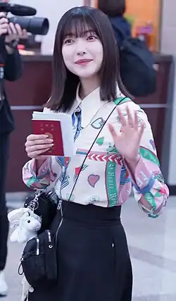 On February 16, 2020, it was announced during a special program on the video streaming service SHOWROOM that she joined Keyakizaka46 (now Sakurazaka46)[6] as a second generation member.[7] She was selected as one of the performing members for the title track for the first time on Sakurazaka46's 1st single "Nobody's Fault", released on December 9, 2020.[8][9]