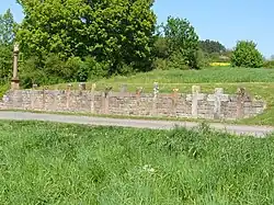 The stone cross collection in Reicholzheim is the largest well-known accumulation of stone cross collection of Germany with 14 stone crosses, which are from sandstone, The crosses are embedded in a red sandstone retaining wall, on the old road way between Reicholzheim and Bronnbach. Eight of the stone crosses are engraved with different indications / symbols: Swords, Dolchmesser, hammer, Lillie and a jug or a port up. Beside the stone crosses a bildstock (prayer column) is from the year 1722.