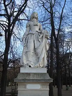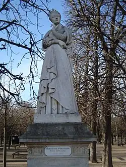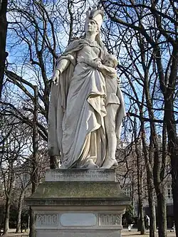 The Queens of France and Famous Women (Reines de France et Femmes illustres) is a group of sculptures in the Jardin du Luxembourg in Paris. It consists of 20 marble sculptures arranged around a large pond in front of the Palais du Luxembourg. Louis-Philippe I chose the women to be portrayed and most of the sculptures were commissioned around 1843, for around 12,000 francs each, and generally exhibited in the Paris Salons of 1847 or 1848.[1]