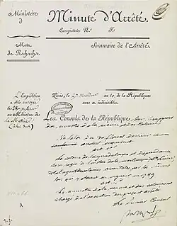 - ^ Aulard, François-Alphonse (1903). Paris sous le Consulat, Recueil de documents pour l'histoire de l'esprit public à Paris [Paris under the Consulate, Collection of documents for the history of public opinion in Paris] (in French). Vol. I. Paris: L. Cerf, Noblet, Quantin. pp. 2–4.