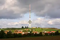 Reisenbach Telecommunication Tower ( German designation: Fernmeldeturm Reisenbach) is among the tallest structures in the Northern parts of Baden-Württemberg. Only the two masts of Donebach longwave transmitter are taller in the Mudau community. As the masts of Donebach transmitter, Reisenbach Telecommunication Tower is property of Deutsche Telekom AG.