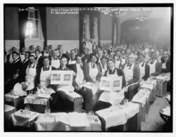 By 1922, Reisenweber's was operating in part as a speakeasy, serving private stocks of liquor at invitation-only events.[22] On New Year's Day, 1922, prohibition agents raided a private party at the restaurant and served summonses to the manager, John Gorman, and his son for serving liquor to a half dozen diners. The prohibition agents alleged that "a telephone bell linked with all the dining rooms was to have been rung a certain number of times when [prohibition officers] appeared".[23]