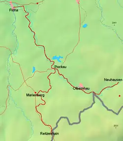 The Reitzenhain–Flöha railway, one of two lines also called the Flöha Valley Railway (German: Flöhatalbahn), is a branch line in Saxony in East Germany. It links the city of Chemnitz with Flöha, Lengefeld, Pockau, Olbernhau and Marienberg, formerly also Neuhausen/Erzgeb. and Reitzenhain and runs through the valleys of the Flöha and the Black Pockau. The line belongs today to DB Regio-Netz Erzgebirgsbahn.