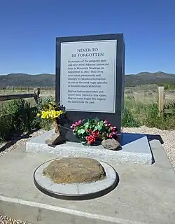 - ^ a b "Mountain Meadows Association – 1990 MONUMENT". Mountain Meadows Association. 2007. Archived from the original on December 20, 2007. Retrieved August 21, 2007.