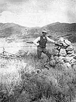 In May 1864, Captain George F. Price and a company of Cavalry found the 1859 memorial and grave had been desecrated. The monument had been torn down, the cross taken away and the stones forming the monument scattered on the valley floor; while the mass-grave underneath had been defaced.[3]