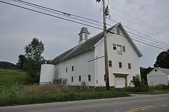 The Remington–Williamson Farm stands about 0.5 miles (0.80 km) north of Huntington's village center, and is roughly bisected by Main Road, the principal road leading north from the village. It is bounded on the west by the Huntington River, a tributary of the Winooski River, and on the south by Brush Brook, which enters the river at the farm's southernmost corner. The farmstead consists of a 2+1⁄2-story Federal style brick house, set on the west side of the road, a large bank barn, and a smaller c. 1840 barn, both of the latter across the road from the house. The bank barn is three stories in height, with ground level or ramp access to all three levels, and is capped by a cupola. It has been little altered, with some modern foundation footings of concrete, and a new opening cut into the third level in the 1980s.[2]