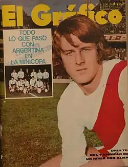 He would make his first senior appearance during the 1971 Argentine Primera División as a part of a project by club manager Didi to promote several youth players to the senior squad alongside his teammates Héctor Isaac Rodríguez, Pablo Zuccarini, Alfredo Granatto, Mario Finarolli and Norberto Alonso.[3] During a friendly against Fluminense on 3 February 1972, a brawl would break out between the two clubs following prior bad relations between the two clubs with the tipping point being when several River Plate players would begin to beat up Oliveira after he had tripped by the River Plate substitute bench. Daulte would be suspended alongside his teammates Jorge Gabriel Vázquez, Raúl Giustozzi, César-Auguste Laraignée, Joaquín Pedro Martínez and Alfredo Granato as well as Fluminense players Jorge Vitório, Cafuringa and Mickey. All of these suspensions would later be lifted with the exception of Daulte, as he would be forced to miss out on a few matches due to his participation.[4]