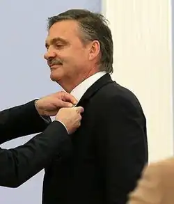Fasel stepped down as IIHF president on 25 September 2021, and was inducted into the IIHF Hall of Fame on the same day.[17][18] He was succeeded as IIHF president by French Ice Hockey Federation president, Luc Tardif.[19][20] He is still one of the life and honorary presidents of IIHF.[21][22]