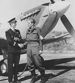 ![]() René Mouchotte and Sqn Ldr "Jack" Charles at RAF Biggin Hill in May 1943 | |