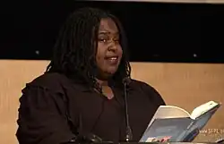 Watson was born in Paterson, New Jersey and grew up in northeast Portland, Oregon after her parents' divorce. Her mother's family is originally from West Virginia.[4] Watson attended Vernon Elementary School, Binnsmead Middle School, and Jefferson High School in Portland Oregon.[5] She was a member of Antioch Missionary Baptist Church where she recited poetry on holidays and special occasions.[6] She loved poetry from a young age and read the work of poets like Maya Angelou and Langston Hughes.[7] When she first read poems by Hughes in elementary school, Watson felt a strong connection to them and sense of herself, her family, and her neighbors reflected in his work.[2] Sandra Cisneros' The House on Mango Street was one of the formative works of her childhood.[8] From a young age, she knew she was interested in writing and was encouraged to pursue this by her teachers and family.[9] In middle school, she wanted to be a lawyer for a time.[10] This was also when she wrote her first play, which her middle school produced as their spring show.[4] While in high school she participated in a mentorship and has since returned to mentor others at her former high school. As a senior she also assisted in teaching poetry to underclassmen.[7] Watson describes herself as a teaching artist, having spent twenty years teaching poetry and theater before becoming a novelist.[11] She moved to New York in 2005 where she attended The New School to study creative writing and art therapy. While she was in school she published her first book.[7][2] In the future she hopes to publish adult fiction and poetry books in addition to her young adult and children's books.[7]