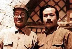 On 2 July 1936, Ren's Second and Sixth Army Groups met with the Red Fourth Army led by Zhang Guotao and Xu Xiangqian in Sichuan, Garzê.[14] Ren was then the political commissar of the Red Second Army.[15] With the end of the Long March in October, Ren and Peng Dehuai were appointed as the Political Commissars for the Front Command of the CCP to resist Hu Zongnan's forces that were in Shaanxi.[16] By December, was a member of both the Revolutionary Military Commission of the CPC Central Committee and the Presidium.[14]