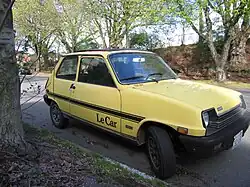 The Le Car was offered in three-door hatchback form only from 1976 until 1980. For the 1980 model year, the front end was updated to include a redesigned bumper, grille, and rectangular headlights. A five-door hatchback body style was added in the 1981 model year. Sales increased each year, from 6,800 in 1976 to 37,000 in 1982.[33] Although the Le Car did not see popularity in the U.S., it sold reasonably well in Canada.[34] Imports from France continued through 1983, when the car was replaced by the Kenosha, Wisconsin—built Renault 11-based Renault Alliance. Sales in Canada continued until 1986, two years after the second generation Renault 5 (known as the Supercinq or Superfive) had replaced it in the European market. Despite the 'Le Car' brand being created specifically for the North American market, Renault later applied the name to special edition versions of the Renault 5 in Europe from 1979 onward.