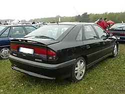 In 1994, Renault launched the high-performance Biturbo version available in RXE and Baccara models. This model featured a twin-turbo, 262 PS (193 kW; 258 hp) evolution of the 3.0 L V6 of the Alpine A610, developed with the assistance of German tuning firms Hartge and Irmscher, coupled with all-wheel drive.