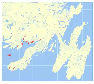 ![]() Outcrops of the Rencontre Formation in Rencontre, NL. | |