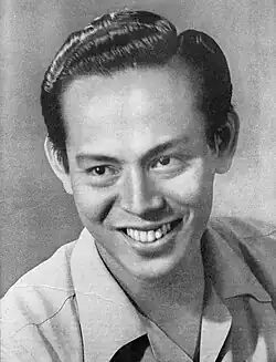 In 1941, as the domestic film industry was seeking young, educated actors to improve the public perception of cinema, Soekarno was approached by Union Films and cast in their production Soeara Berbisa, a film which told of two men who compete for a woman's love before discovering that they are brothers.[1][2] He appeared in another film, for Union later that year, when he played a young assistant pharmacist in the company's romance Mega Mendoeng (1942). In March 1942, following the Japanese occupation of the Dutch East Indies, Union was closed, and Soekarno, though working on an adaptation of the legend Damarwulan, was let go.[3]