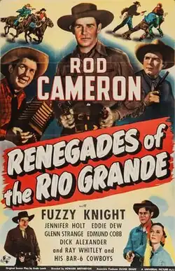 Renegades of the Rio Grande is a 1945 American western film directed by Howard Bretherton and starring: Rod Cameron, Eddie Dew and Jennifer Holt.[1][2] It was produced and distributed by Universal Pictures. Ande Lamb wrote the screenplay.