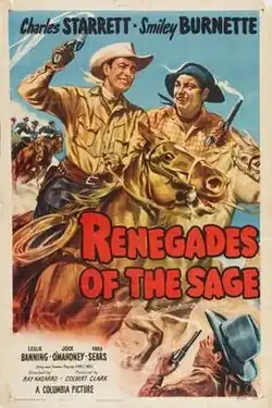 Renegades of the Sage is a 1949 American Western film directed by Ray Nazarro and written by Earle Snell. The film stars Charles Starrett, Smiley Burnette, Leslie Banning, Trevor Bardette, Douglas Fowley and Jock Mahoney. The film was released on November 24, 1949, by Columbia Pictures.[1][2][3] This was the forty-third of 65 films in the Durango Kid series.[4]