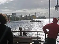 The service was passenger-only until the car boom of the 1950s and 1960s, when it became a car ferry. With the opening of the Clyde Tunnel just two miles upstream, which allowed faster crossings, the car service ceased in May 1984.[2] Now, due to expanding car use, the tunnel and surrounding routes are themselves frequently congested. One of the old car ferries can still be seen moored on the Broomielaw, in the city centre of Glasgow, where it is a popular entertainment and nightspot, also called the Renfrew Ferry.[3][4]