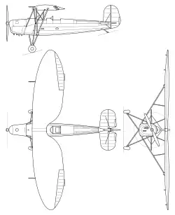 The aircraft's wing has an elliptical planform, the pine wood structure was covered with canvas significantly saving on materials important in the war. The body was made of cheap CrMo steel pipes with some wire reinforcements and almost 3/4 of the surface is covered with canvas, reinforced with wooden elements in the most critical places. This design has also been helpful in fixing minor damage that usually occurs during training flights.[1][2]