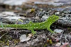 The extant (living) reptiles of New Zealand consist of numerous species of terrestrial lizards and the lizard-like tuatara, and several species of sea turtles and sea snakes.[1] All but one species are native to New Zealand, and all but one of the terrestrial species are endemic to New Zealand, that is, they are not found in any other country. Many species of foreign reptiles enter New Zealand through accidental importation or smuggling,[2] but only the Australian native Lampropholis delicata (rainbow skink or plague skink) has become established in the wild,[1][2] and it is considered an invasive pest.[3]