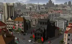 Delays to Republic led the Elixir Studios development team to restrict the ambitious scope of the game. Revisions to the scope included the number of locations, with the concept of "hundreds of cities and towns" to a district-based system within a single city.[4] Furthermore, the level of detail advertised early in the game, citing "thousands of factions, organizations and parties to subvert and control, each with their own goals and powers" was profoundly simplified to a total of ten distinctive factions.[14] Following major delays, Republic reached its beta testing stage in July 2003,[15] with final mastering of the game completed on August 8, 2003,[16] and the game was launched by Eidos Interactive in North America on August 26,[17][18] Europe on August 29,[19][20] and Australia on September 11.[21] Feral Interactive released a port for Mac OS X the following year on July 30, 2004.[22]