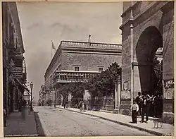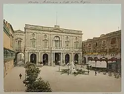 The northwest part of the square consists of a large building originally known as the Casa del Commun Tesoro. The building housed the accounts, contracts and records of the treasury of the Order of Saint John. The first post office in Malta was opened in the building in 1708, and part of it remained a post office until 1849.[9] Over the years, La Casa del Comun Tesoro also housed government offices, a hotel and a cinema. The building was damaged in World War II, but it was repaired and it now houses the Casino Maltese. Some parts of the ground floor are occupied by cafés and shops.[10]