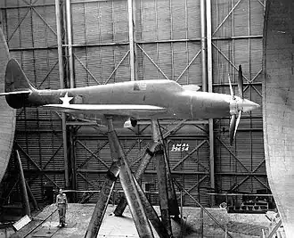 The United States Army Air Corps began the R40-C fighter competition in February 1940. The competition encouraged manufacturers to propose unorthodox high-speed fighter aircraft that met the requirements of Type Specification XC-622.[1] The specification called for a single-engined high-performance fighter aircraft, with a maximum speed between 425 and 525 mph (684 and 845 km/h), armed with both machine guns and cannons, and be capable of landing on a 3,000 ft (910 m) long grass runway.[2]