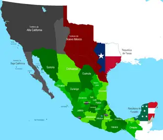 Texas and Yucatán, both territories of Mexico, were resistant to the order of the Mexican government and each decided to secede. The two territories' reasons for secession differed, but nonetheless they shared a common goal of independence. Texas seceded first in 1836, and Yucatán seceded in 1841 with help from Texan naval forces.[1]