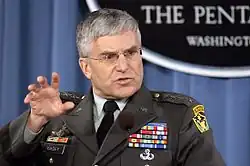 Pier Scolari, Sgrena's life partner, stated that "Giuliana had information and the US military did not want her alive".[2] "The Americans and the Italians knew that the car was arriving."[13] He claims that Sgrena had detailed information about the use of banned weapons during the recent operations in Fallujah (see Operation Phantom Fury). Sgrena has written about alleged use of napalm in Fallujah.[14] Scolari went on to speculate that they were at 700 metres from the airport, which implies that they had crossed all the checkpoints. "The whole shooting was heard live by the Presidency of the Council, who was on the phone with one of the agents. Then the US military confiscated and turned off the phones", said Scolari, who was then at the Palazzo Chigi.[2][15] General Casey claimed that Sgrena and Calipari's vehicle had not gone through any prior checkpoints.