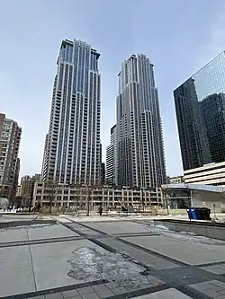 Residences of College Park is a skyscraper complex in Toronto, Ontario, Canada. The north and south towers were completed in 2006 and 2008, respectively, and stand 155 and 140 m (509 and 459 ft) on Bay Street just south of College Street near the historic College Park department store. A third phase of the development, known as Aura opened in 2014, and is the tallest residential building in Canada.
