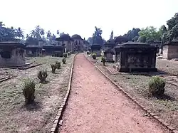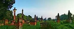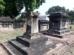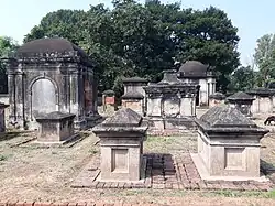 Berhampore or Baharampur was fortified in 1757 by the East India Company, after the Battle of Plassey in June 1757, and it continued as a cantonment until 1870. Many important British residents and military personnel of East India Company, who lived in Berhampore are buried in this cemetery. There are the graves of many European Residents amongst whom most famous were Captain James Skinner, George Thomas, Henry Creighton. There are a number of epitaphs attached to the tombs and monuments of 18th and 19th century.[4] Presently this is a Monument of National Importance in West Bengal under maintenance of Archaeological Survey of India.[5][6]